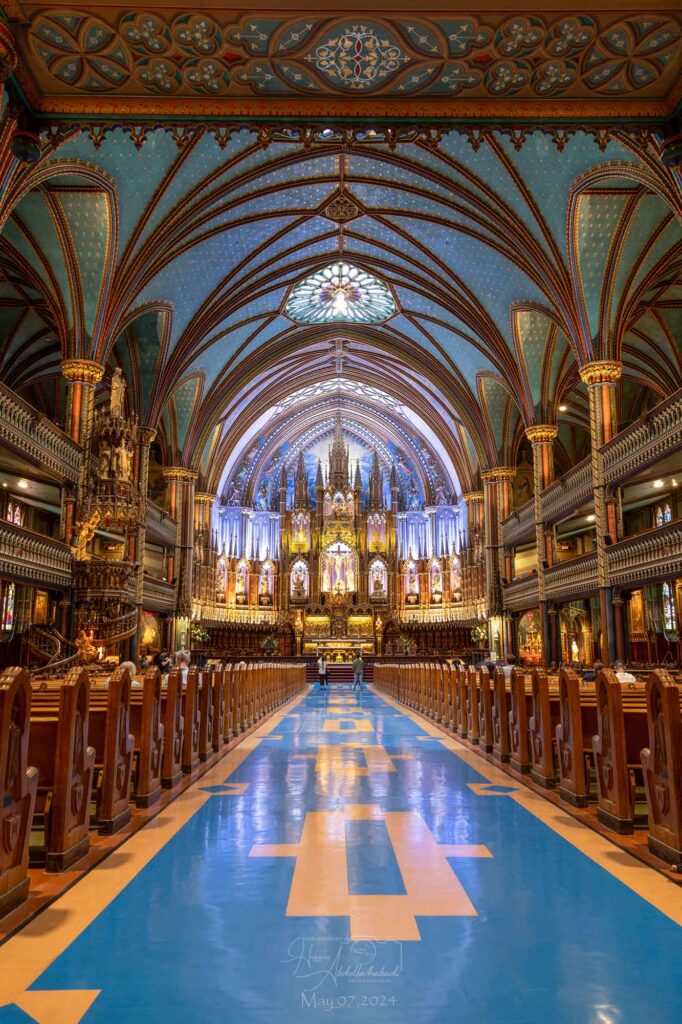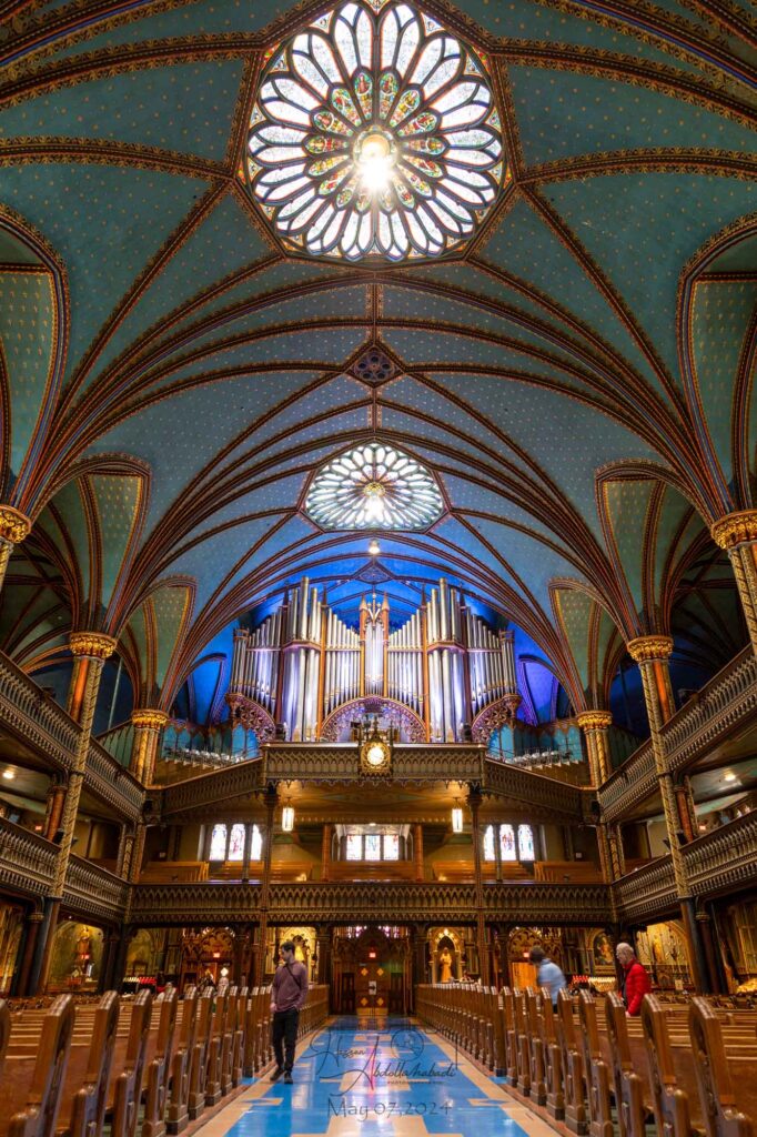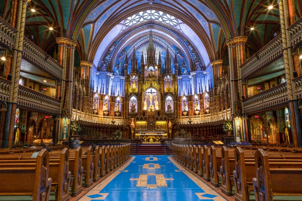 فضای داخلی کلیسا از جمله دراماتیکترین کلیساهای جهان است و به عنوان شاهکاری از معماری احیای گوتیک شناخته میشود. طاقها به رنگ آبی تیره رنگآمیزی شده و با ستارههای طلایی تزئین شدهاند و بقیه محراب با رنگهای آبی، لاجوردی، قرمز، بنفش، نقرهای و طلایی تزئین شده است. این کلیسا مملو از صدها حکاکی چوبی پیچیده و چندین مجسمه مذهبی است. برخلاف یک کلیسا، پنجرههای شیشهای رنگی در امتداد دیوارهای محراب صحنههای کتاب مقدس را به تصویر نمیکشند، بلکه صحنههایی از تاریخ مذهبی مونترال را به تصویر میکشند