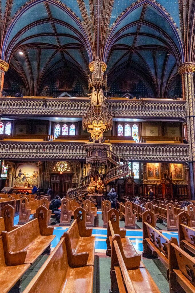 Notre-Dame Basilica of Montreal (French: Basilique Notre-Dame de Montréal) is a minor basilica of the Catholic Church in the historic Old Montreal district of Montreal in Quebec, Canada. It is located at 110 Notre-Dame Street West, at the corner of Saint Sulpice Street. It is situated next to the Saint-Sulpice Seminary and faces the Place d’Armes square.