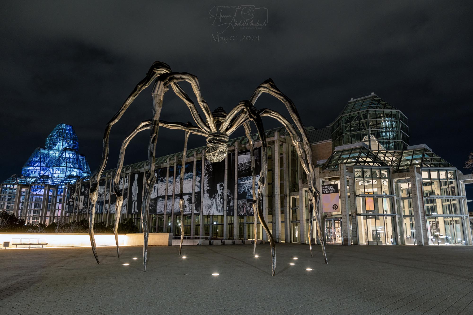 قبل از ورود به ساختمان خیرهکننده گرانیت و شیشهای طراحیشده توسط موشه سفدی، از زیر مجسمه ۹ متری عنکبوت «مامان» که اثر لوئیز بورژوا است، عبور کنید