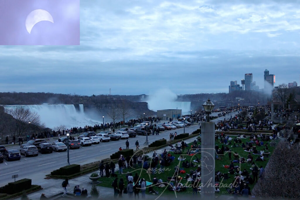 آبشار نیاگارا مکان مورد علاقه بسیاری از مردم و منظرهای زیبا برای عکاسان است. منظره خورشیدگرفتگی در کنار آبشار نیاگارا را تصور کنید ، برنامه من برای این خورشیدگرفتگی نیز آبشار نیاگارا بود. اما ، آسمان در روز خورشیدگرفتگی ابری بود
